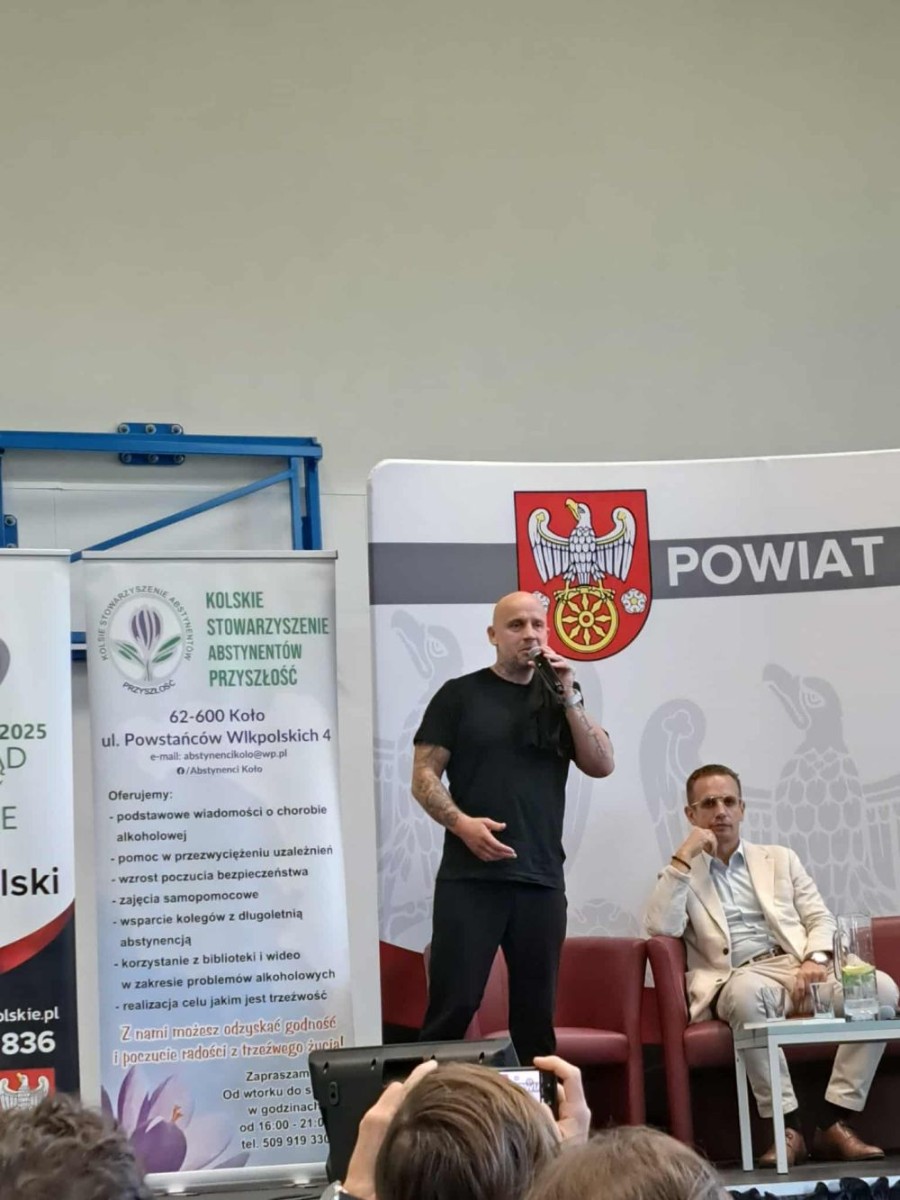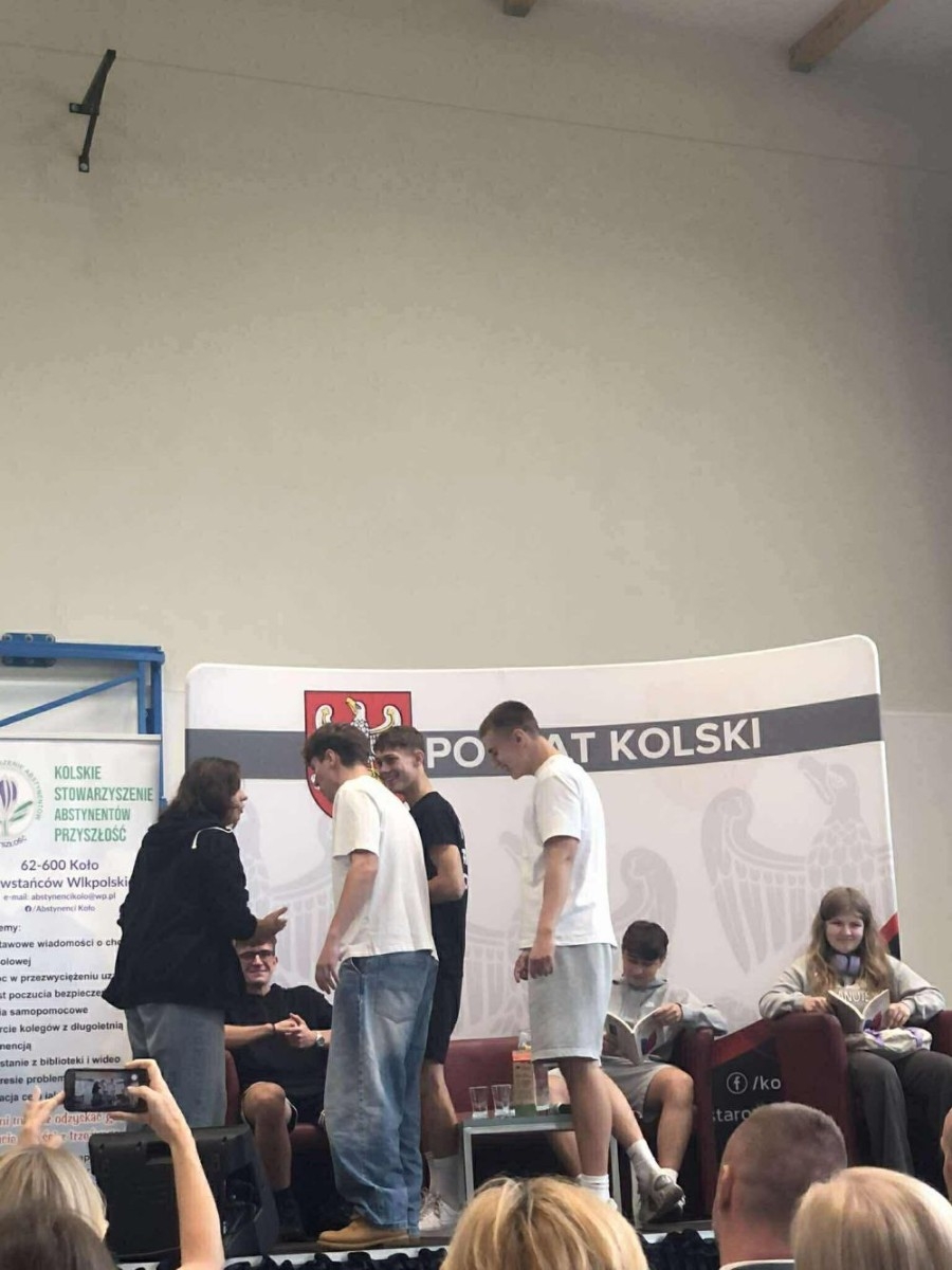 Młodzież klas czwartych ZSEA uczestniczyła w dniu 19 września br. w Forum Trzeźwościowym organizowanym przez Kolskie Stowarzyszenie Abstynentów „ Przyszłość” oraz Starostwo Powiatowe. W Auli ZST w Kole prelekcje wygłosił dyplomowany psychoterapeuta, specjalista psychoterapii uzależnień dr Piotr Sarnowski. Teoria została wsparta osobistym świadectwem znanego rapera Ryśka - Peja. Poruszająca historia upadku i wzlotów, walki i trwania została bardzo emocjonalnie odebrana przez uczestników Forum. Wykonana składanka kompozycji artysty poruszyła odbiorców, którzy chętnie prosili muzyka o wspólne zdjęcia.