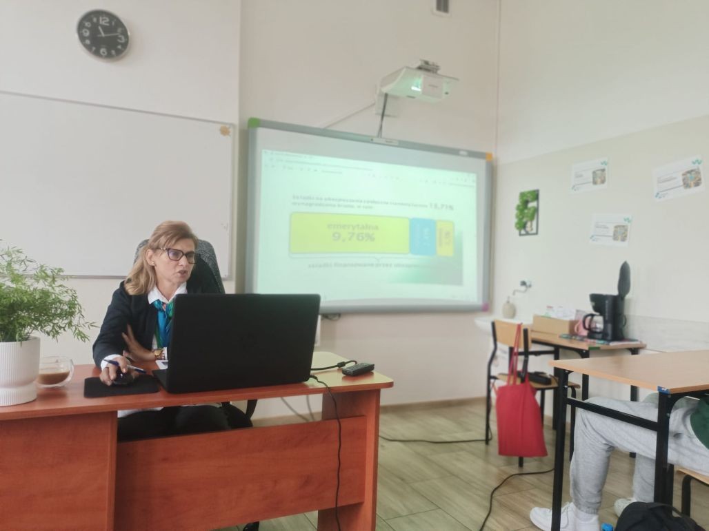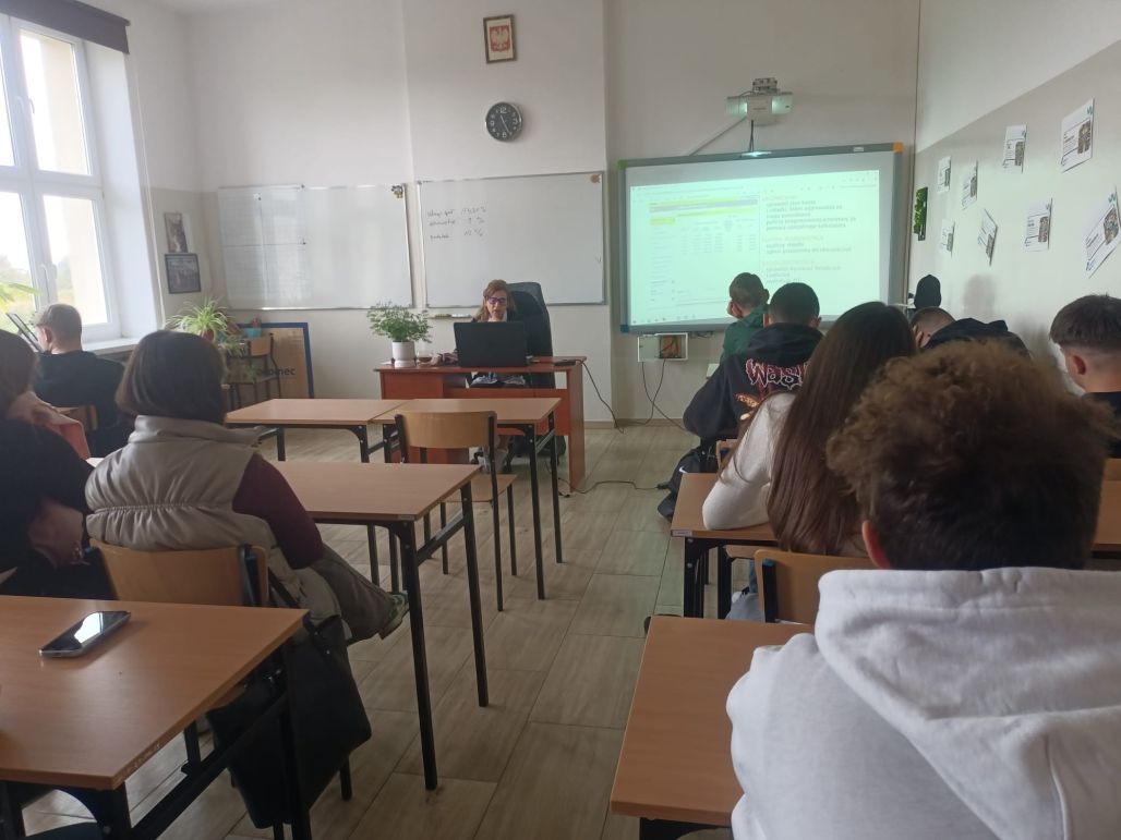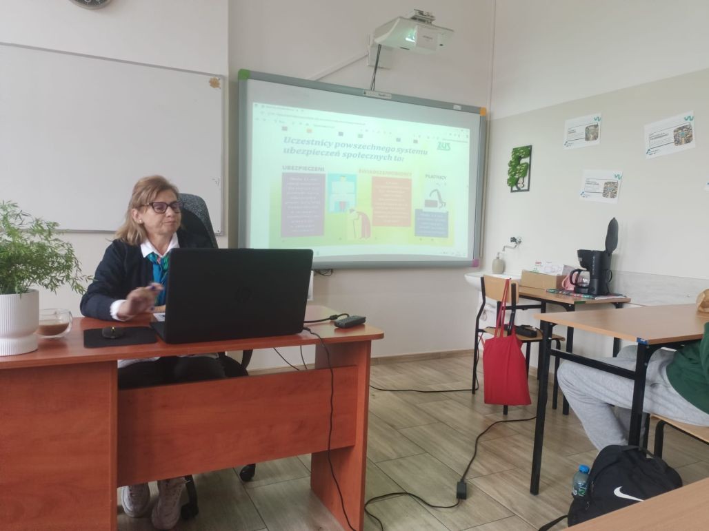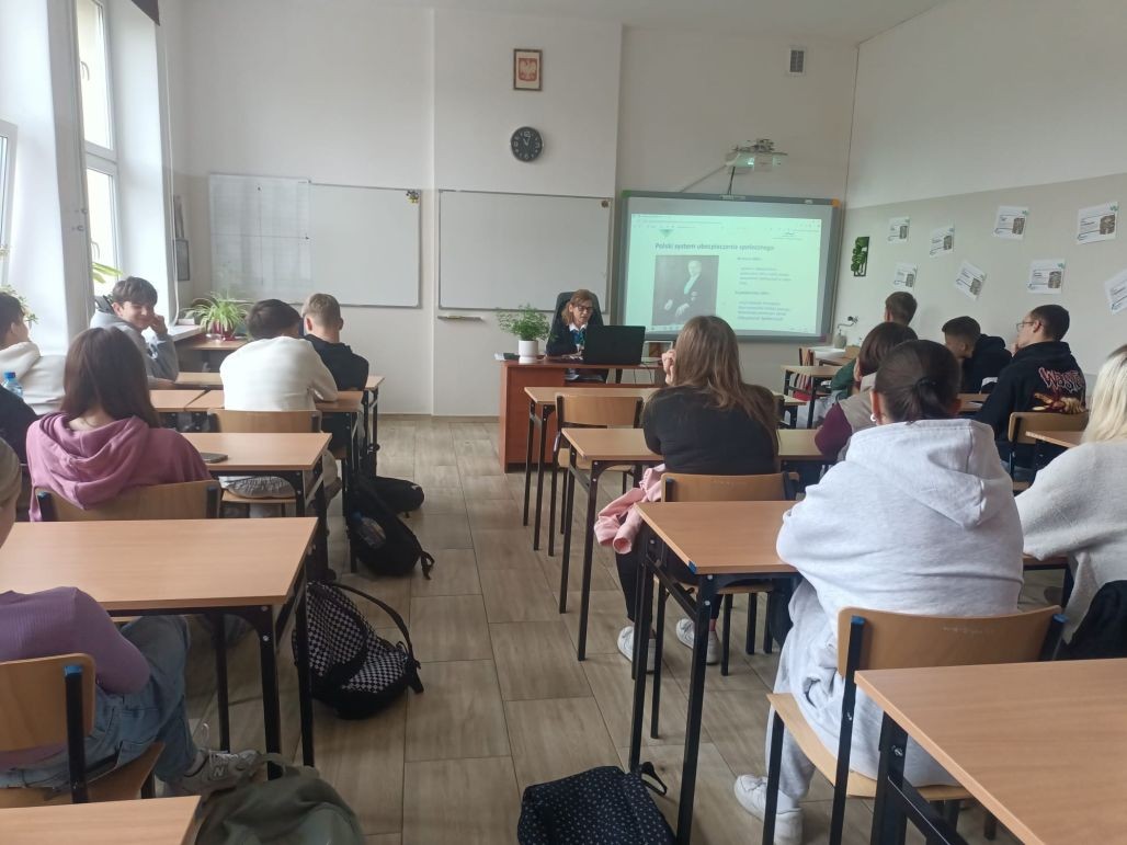 Korzystając z oferty edukacyjnej Zakładu Ubezpieczeń Społecznych w dniu 24 września 2025 roku młodzież klasy 1 tgr, a 30 września uczniowie klasy 2 te uczestniczyli w zajęciach „Lekcje z ZUS” przeprowadzone w naszej szkole przez pracownika oddziału ZUS w Kole panią Halinę Stępniak. W najbliższym czasie Podobne spotkania zostaną przeprowadzone w pozostałych klasach pierwszych i drugich naszej szkoły.