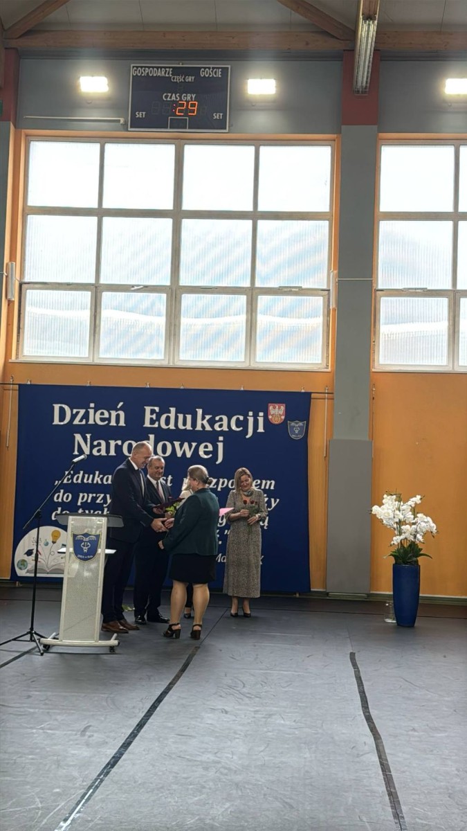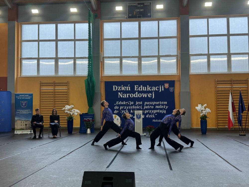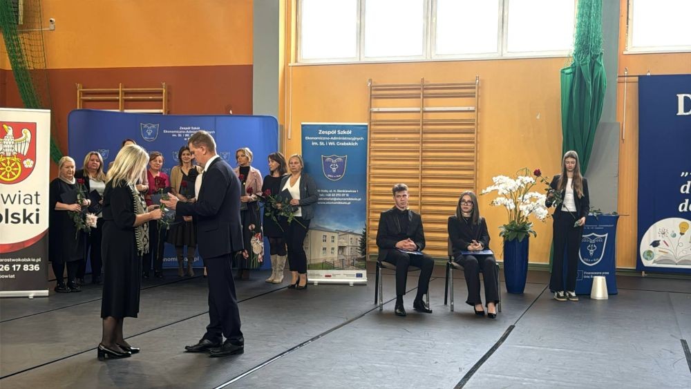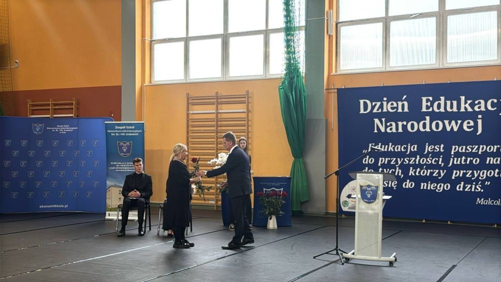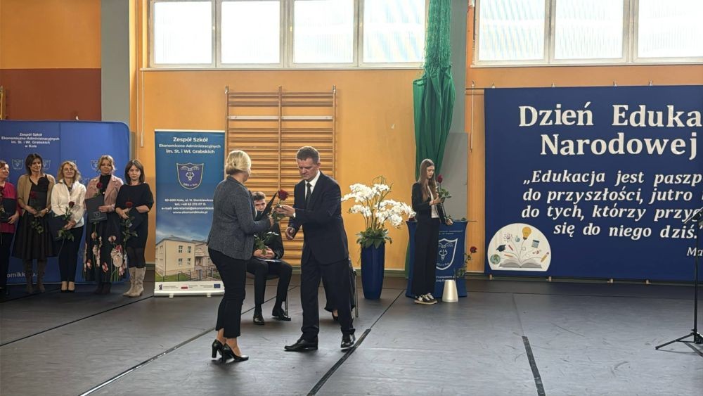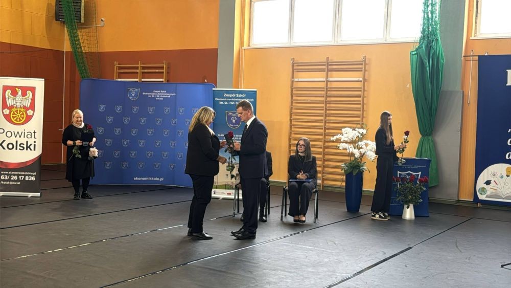 15 października Zespół Szkół Ekonomiczno-Administracyjnych im. St. i Wł. Grabskich był organizatorem powiatowych obchodów Dnia Edukacji Narodowej. W wyjątkowy nastrój tej uroczystości wprowadzili Nas Karolina, Milena, Ola oraz Wiktor, prezentując przepiękny układ taneczny. Prowadzący, Kira Kavaliunaitse oraz Jakub Niszczak, powitali wszystkich obecnych. Wprowadzony został sztandar szkoły i odśpiewano hymn. Następnie Pan Dyrektor Mieczysław Drożdżewski przywitał przybyłych na uroczystość gości i poprosił o zabranie głosu Starostę Kolskiego Pana Roberta Kropidłowskiego. W jego imieniu życzenia z okazji Dnia Edukacji Narodowej złożył Wicestarosta Lech Brzeziński. Po jego wystąpieniu Starosta, wspólnie z Przewodniczącym Rady Powiatu Kolskiego Panem Ryszardem Kasiorkiem, Naczelnikiem Wydziału Oświaty, Kultury i Promocji Panią Dorotą Szkudlarek oraz Zastępcą Naczelnika Panią Alicją Łączkowską, wręczyli nagrody dyrektorom oraz nauczycielom ze szkół ponadpodstawowych powiatu kolskiego, doceniając ich szczególne osiągnięcia. Głos zabrała również przedstawicielka Związku Nauczycielstwa Polskiego Pani Joanna Adamczyk. Muzycznie uświetniła ten moment Antonina Jabłońska przy akompaniamencie Klaudii Gajdy oraz Oliwii Biernat, wykonując utwór autorstwa Henryka Perzyńskiego pod tytułem „Czyjeś serce”. Następnie nauczyciele kolskiego „Ekonomika” zostali uhonorowani nagrodami Dyrektora ZSEA. Prowadzący uroczystość złożyli wszystkim życzenia, a przedstawicielki Samorządu Uczniowskiego wręczyły upominki z okazji Dnia Edukacji Narodowej. W tle mogliśmy wysłuchać pięknej recytacji „Lekcji” w wykonaniu Marceliny Kosteckiej oraz niezapomnianej interpretacji piosenki „Riptide” w wykonaniu Marii Kacperskiej. Podczas uroczystego apelu nagrody w postaci dyplomu oraz bonu na wspólne wyjście otrzymały klasy, które osiągnęły najwyższą średnią oraz zapracowały na najlepszą frekwencję w ubiegłym roku szkolnym. Zwycięzcami w przypadku osiąganych wyników są uczniowie obecnej klasy 4 TEA, natomiast klasa 3 TR wiedzie prym w regularnym uczęszczaniu na zajęcia. Artystycznie moment ten wzbogaciły występy Wiktora Bucikiewicza, wykonującego solowy układ choreograficzny oraz Leny Niszczak, śpiewającej utwór Oskara Cymsa „Nie musisz się bać”. Zwieńczeniem występów muzycznych było wspólne wykonanie utworu „Sobie i Wam” z repertuaru Męskie Granie Orkiestra. Przy mikrofonie stanęły Antosia Jabłońska, Oliwia Biernat, Julia Podolska, Marcelina Kostecka, Nikola Łagosz, Julia Królikowska, Julia Krawczyk, Magdalena Pankowska, Weronika Jakubowska oraz Pani Anna Malicka.