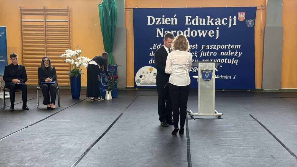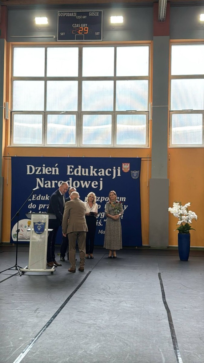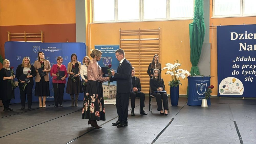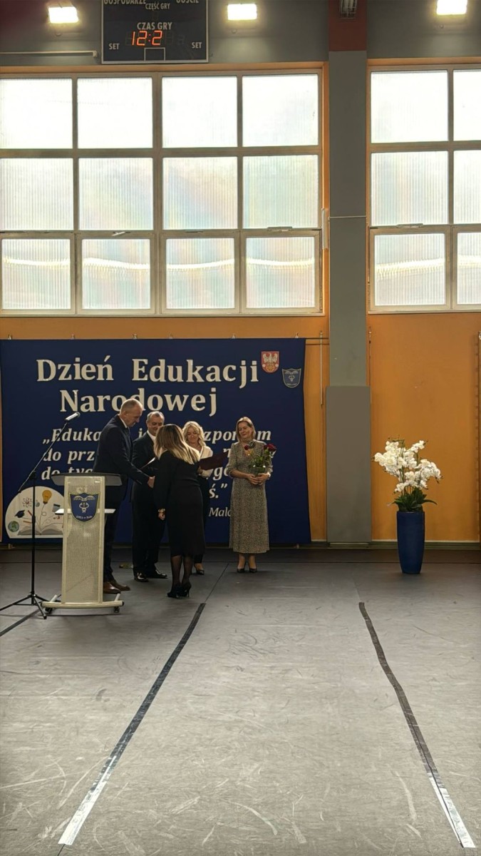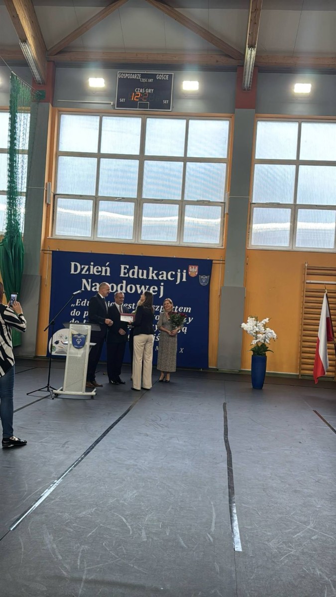 15 października Zespół Szkół Ekonomiczno-Administracyjnych im. St. i Wł. Grabskich był organizatorem powiatowych obchodów Dnia Edukacji Narodowej. W wyjątkowy nastrój tej uroczystości wprowadzili Nas Karolina, Milena, Ola oraz Wiktor, prezentując przepiękny układ taneczny. Prowadzący, Kira Kavaliunaitse oraz Jakub Niszczak, powitali wszystkich obecnych. Wprowadzony został sztandar szkoły i odśpiewano hymn. Następnie Pan Dyrektor Mieczysław Drożdżewski przywitał przybyłych na uroczystość gości i poprosił o zabranie głosu Starostę Kolskiego Pana Roberta Kropidłowskiego. W jego imieniu życzenia z okazji Dnia Edukacji Narodowej złożył Wicestarosta Lech Brzeziński. Po jego wystąpieniu Starosta, wspólnie z Przewodniczącym Rady Powiatu Kolskiego Panem Ryszardem Kasiorkiem, Naczelnikiem Wydziału Oświaty, Kultury i Promocji Panią Dorotą Szkudlarek oraz Zastępcą Naczelnika Panią Alicją Łączkowską, wręczyli nagrody dyrektorom oraz nauczycielom ze szkół ponadpodstawowych powiatu kolskiego, doceniając ich szczególne osiągnięcia. Głos zabrała również przedstawicielka Związku Nauczycielstwa Polskiego Pani Joanna Adamczyk. Muzycznie uświetniła ten moment Antonina Jabłońska przy akompaniamencie Klaudii Gajdy oraz Oliwii Biernat, wykonując utwór autorstwa Henryka Perzyńskiego pod tytułem „Czyjeś serce”. Następnie nauczyciele kolskiego „Ekonomika” zostali uhonorowani nagrodami Dyrektora ZSEA. Prowadzący uroczystość złożyli wszystkim życzenia, a przedstawicielki Samorządu Uczniowskiego wręczyły upominki z okazji Dnia Edukacji Narodowej. W tle mogliśmy wysłuchać pięknej recytacji „Lekcji” w wykonaniu Marceliny Kosteckiej oraz niezapomnianej interpretacji piosenki „Riptide” w wykonaniu Marii Kacperskiej. Podczas uroczystego apelu nagrody w postaci dyplomu oraz bonu na wspólne wyjście otrzymały klasy, które osiągnęły najwyższą średnią oraz zapracowały na najlepszą frekwencję w ubiegłym roku szkolnym. Zwycięzcami w przypadku osiąganych wyników są uczniowie obecnej klasy 4 TEA, natomiast klasa 3 TR wiedzie prym w regularnym uczęszczaniu na zajęcia. Artystycznie moment ten wzbogaciły występy Wiktora Bucikiewicza, wykonującego solowy układ choreograficzny oraz Leny Niszczak, śpiewającej utwór Oskara Cymsa „Nie musisz się bać”. Zwieńczeniem występów muzycznych było wspólne wykonanie utworu „Sobie i Wam” z repertuaru Męskie Granie Orkiestra. Przy mikrofonie stanęły Antosia Jabłońska, Oliwia Biernat, Julia Podolska, Marcelina Kostecka, Nikola Łagosz, Julia Królikowska, Julia Krawczyk, Magdalena Pankowska, Weronika Jakubowska oraz Pani Anna Malicka.