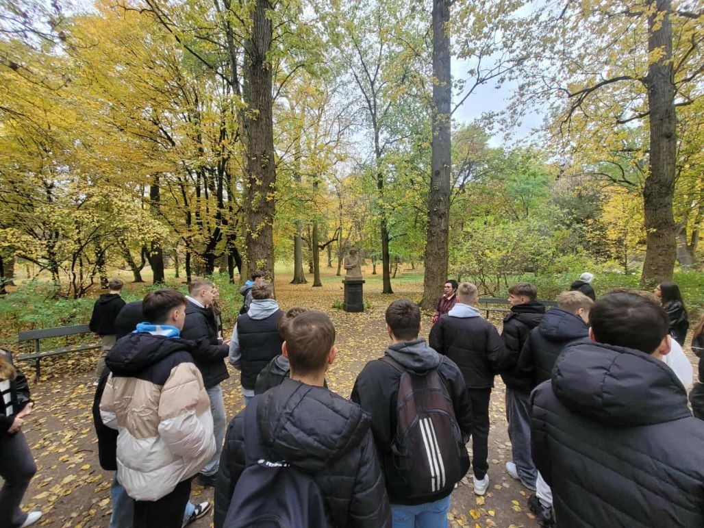 W dniu 23 października 2025 r. grupa uczniów z Zespołu Szkół Ekonomicznych w Kole miała okazję spędzić inspirujący dzień w stolicy. Podczas wycieczki młodzi ludzie poznali wiele zabytków Warszawy, między innymi zwiedzali Łazienki Królewskie z przewodnikiem, który przybliżył im historię tego wyjątkowego miejsca.