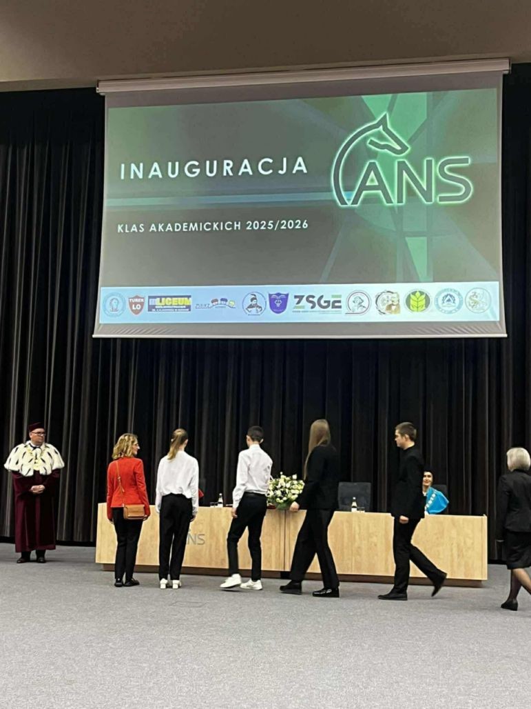 W dniu 13 listopada 2025 r. uczniowie klasy 4 TEA z wychowawcą Elżbietą Sędziak oraz klasy 4 TEB z wychowawcą Anną Polichnowską uczestniczyli w uroczystej Inauguracji Klas Akademickich ANS w Koninie. Spotkanie odbyło się w Centrum Wykładowo-Dydaktycznym ANS w Koninie.