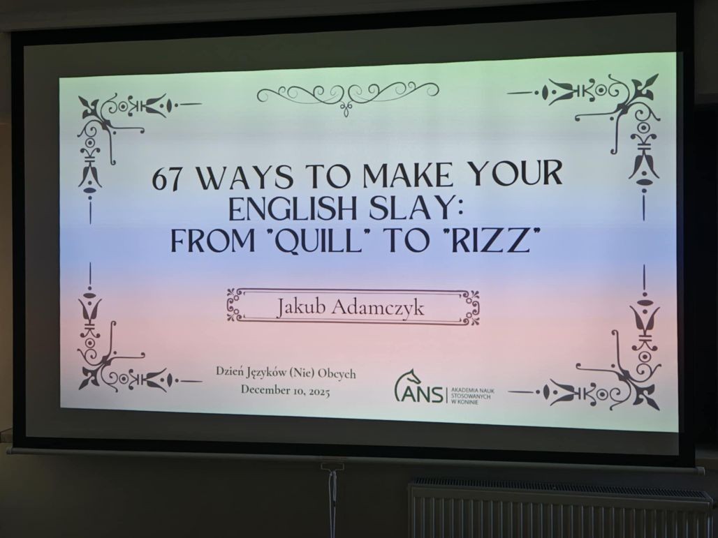 Po ogłoszeniu wyników oraz rozdaniu nagród, uczniowie wzięli udział w warsztatach zatytułowanych "67 ways to make your english slay: from quil to rizz", które prowadzone były w języku angielskim.