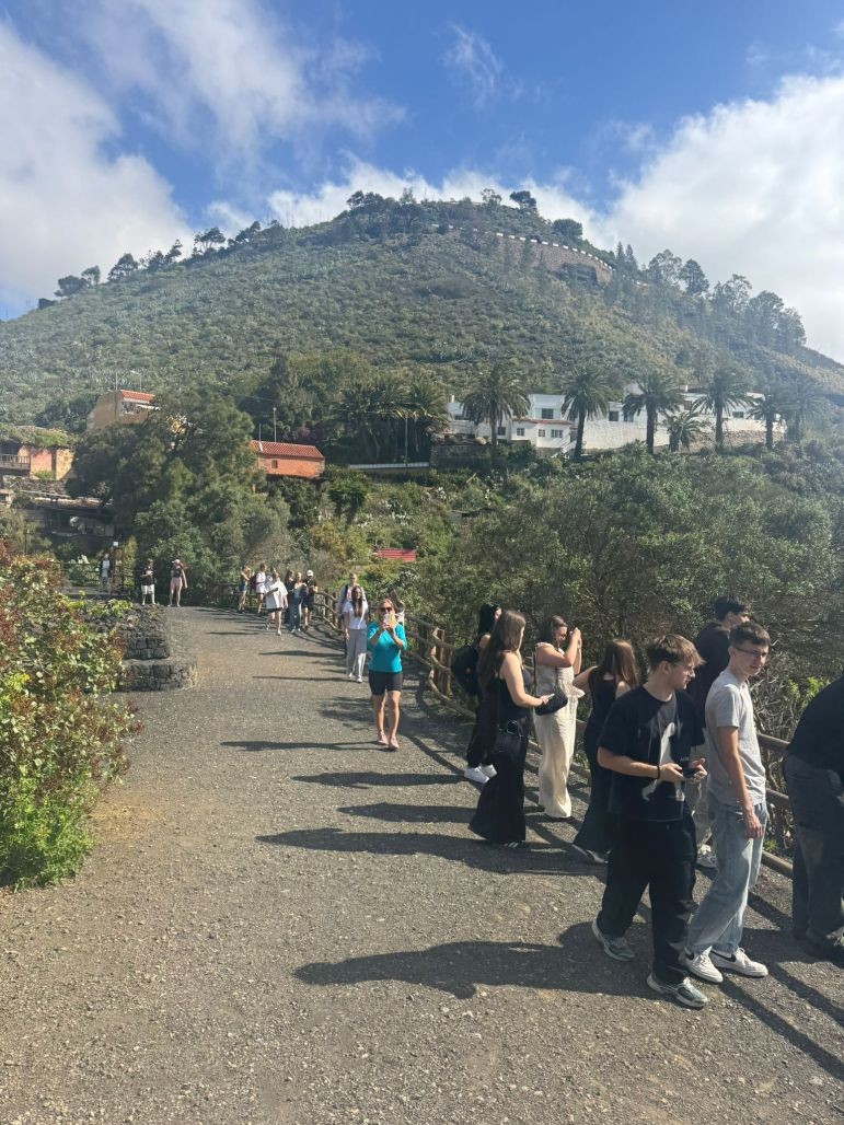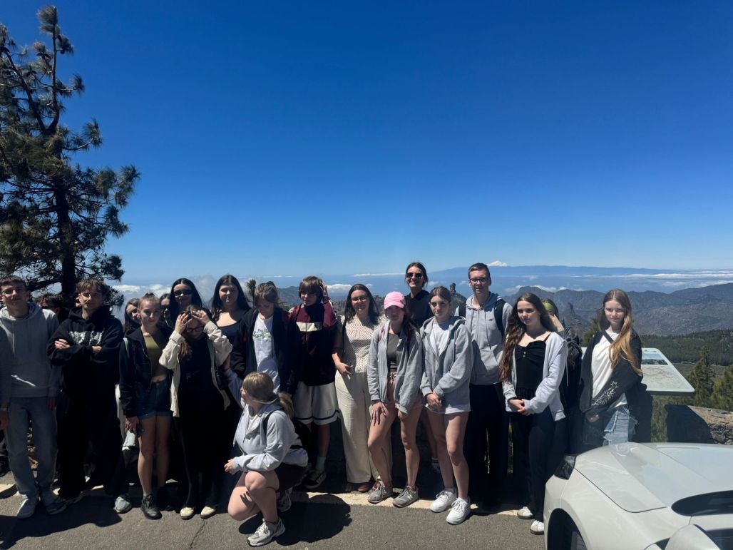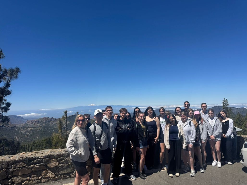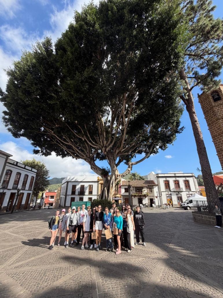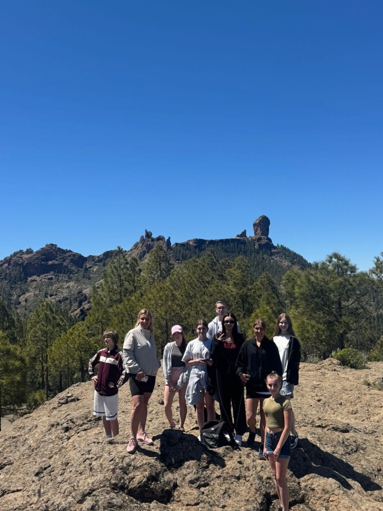 Pierwszym punktem programu była- Caldera de Bandama – imponujący krater wulkaniczny, który zachwycił uczestników widokami rozciągającymi się na okolicę. Uczniowie mieli okazję dowiedzieć się więcej o wulkanicznym pochodzeniu wyspy. 🌋