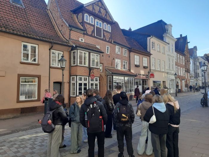 Nasi uczniowie kontynuują swoją współpracę z kolegami oraz koleżankami z Gemeinschaftsschule mit Oberstufe z Reinbek. W dniach 15-19.03.2026 r. Natalia, Julia, Marysia, Marcel i Franek z klasy 1 TOT wraz z opiekunem Panią Anną Malicką mieli okazję ponownie spotkać się partnerami z Niemiec. W niedzielny, marcowy poranek wyruszyliśmy w drogę do Reinbek. Odległość między naszymi miastami jest dość duża w związku z czym podróż trwała ponad 8 godzin. Mieliśmy oczywiście przerwy. Po 18 dotarliśmy na miejsce, gdzie czekała na nas grupa uczniów, która wcześniej odwiedziła naszą szkołę w styczniu. Wspólnie zjedliśmy kolację i zakwaterowaliśmy się w pokojach. Następnego dnia po śniadaniu zwiedzaliśmy szkołę, a młodzież brała udział w zajęciach lekcyjnych. Kolejnym punktem programu były warsztaty ceramiczne w Bergedorf. Każdy z uczestników wymiany mógł własnoręcznie ozdobić wybrane przez siebie naczynie ceramiczne. Był to niezwykle twórczy i kreatywny czas. Młodzież miała okazję do wyrażenia swoich talentów plastycznych. Po obiedzie udaliśmy się na spotkanie z burmistrzem Reinbek, który opowiedział nam o partnerstwie oraz o mieście. Popołudnie spędziliśmy na grze w kręgle w Reinbek-Sportpark, wspólnych spacerach oraz rozmowach. We wtorek po śniadaniu udaliśmy się na dworzec kolejowy, aby wyruszyć na wycieczkę po Hamburgu. Naszą przygodę rozpoczęliśmy od rejsu promem, następnie odbyliśmy spacer tunelem pod Łabą i udaliśmy się na słodkie czekoladowe warsztaty do ChocoVersum, gdzie mieliśmy okazję zapoznać się z procesem tworzenia czekolady od ziarna do tabliczki. Każdy z nas mógł wykonać własną tabliczkę czekolady. Następnie udaliśmy się na krótki spacer w okolice ratusza. Wieczorem odbyło się spotkanie integracyjne, w trakcie którego młodzież i opiekunowie rozmawiali na różne tematy, dotyczące ich życia oraz przyszłości. W środę zwiedziliśmy zamek w Reinbek oraz Luneburg, jedno z miast hanzeatyckich. Zaczęliśmy od Wieży Ciśnień, później oprowadziła nas po mieście Pani przewodnik. Zwieńczeniem dnia był Wieczór Przyjaźni, w trakcie którego prezentowaliśmy Naszą szkołę oraz miasto. Na kolację zostali zaproszeni członkowie organizacji PaKom wspierającej współpracę pomiędzy Kołem i Reinbek, pracownicy urzędu oraz nauczyciele goszczącej nas szkoły. Wspólny wieczór był czasem podsumowań oraz przedstawienia szkoły i miasta. W czwartek po śniadaniu ruszyliśmy w drogę powrotną.