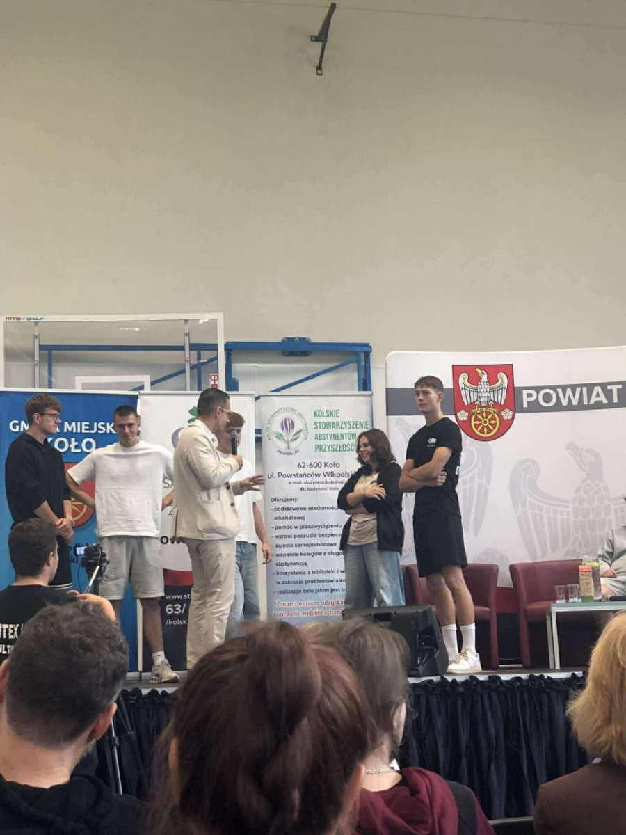 Młodzież klas czwartych ZSEA uczestniczyła w dniu 19 września br. w Forum Trzeźwościowym organizowanym przez Kolskie Stowarzyszenie Abstynentów „ Przyszłość” oraz Starostwo Powiatowe. W Auli ZST w Kole prelekcje wygłosił dyplomowany psychoterapeuta, specjalista psychoterapii uzależnień dr Piotr Sarnowski. Teoria została wsparta osobistym świadectwem znanego rapera Ryśka - Peja. Poruszająca historia upadku i wzlotów, walki i trwania została bardzo emocjonalnie odebrana przez uczestników Forum. Wykonana składanka kompozycji artysty poruszyła odbiorców, którzy chętnie prosili muzyka o wspólne zdjęcia.
