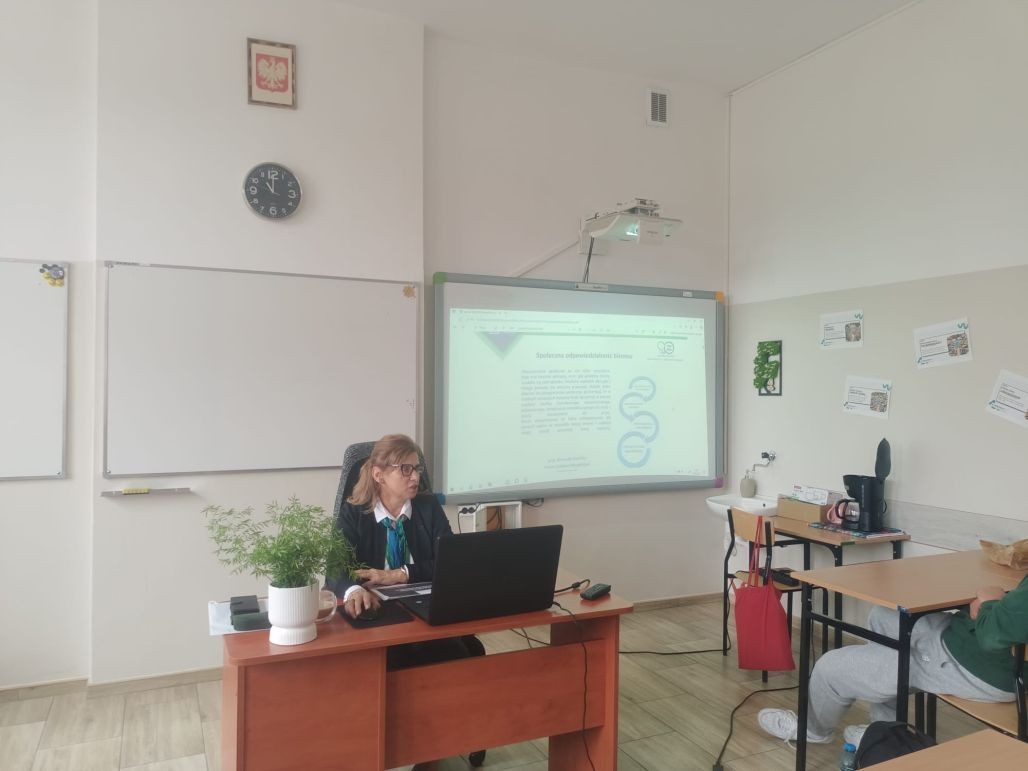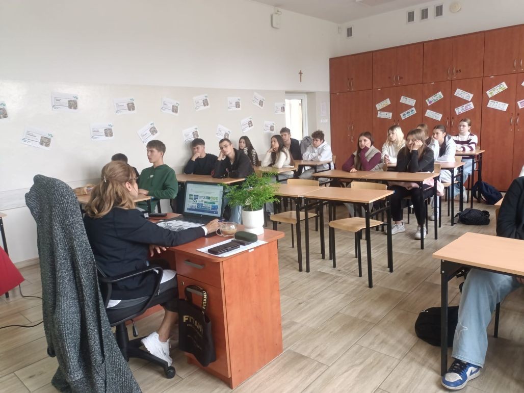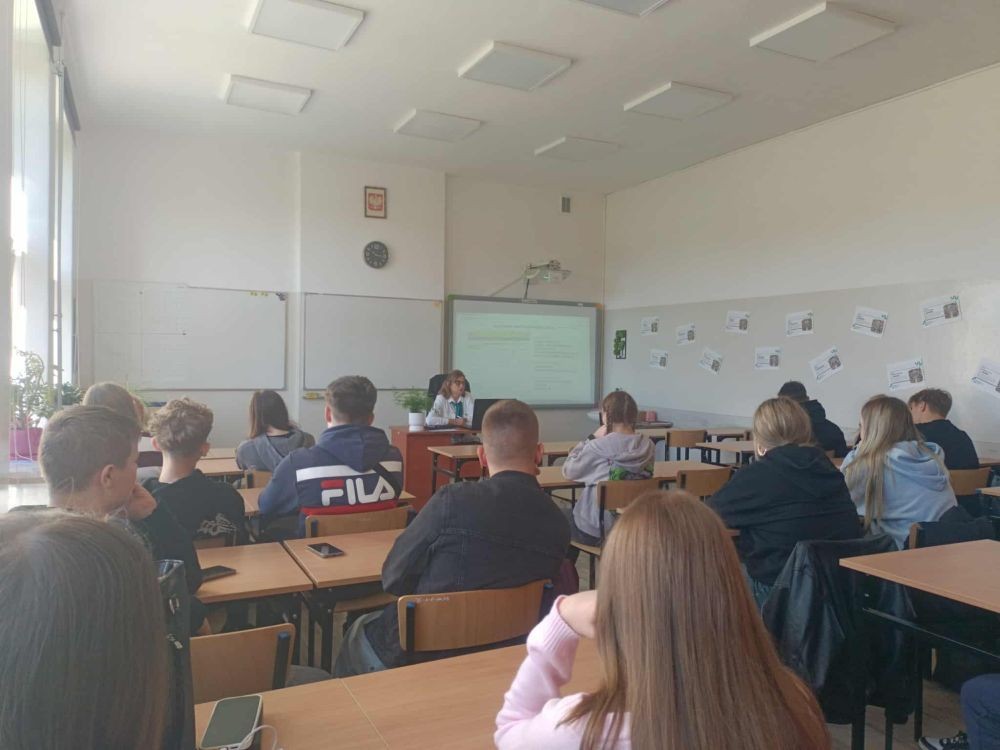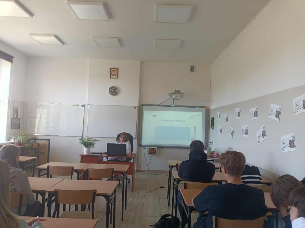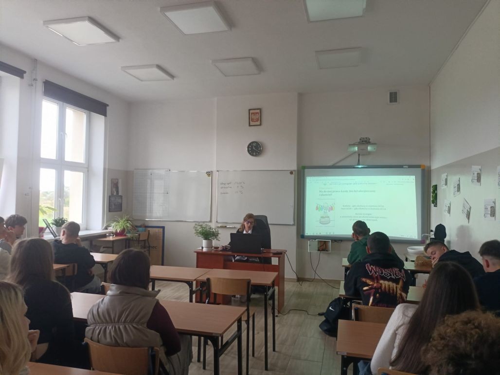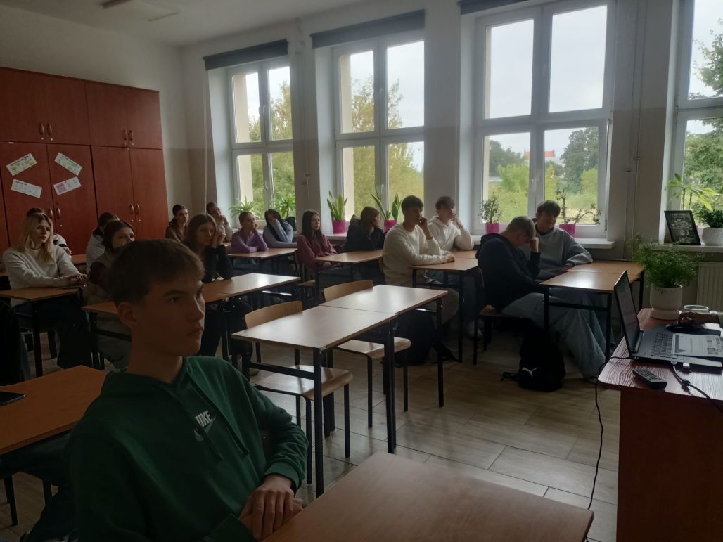 Korzystając z oferty edukacyjnej Zakładu Ubezpieczeń Społecznych w dniu 24 września 2025 roku młodzież klasy 1 tgr, a 30 września uczniowie klasy 2 te uczestniczyli w zajęciach „Lekcje z ZUS” przeprowadzone w naszej szkole przez pracownika oddziału ZUS w Kole panią Halinę Stępniak. W najbliższym czasie Podobne spotkania zostaną przeprowadzone w pozostałych klasach pierwszych i drugich naszej szkoły.