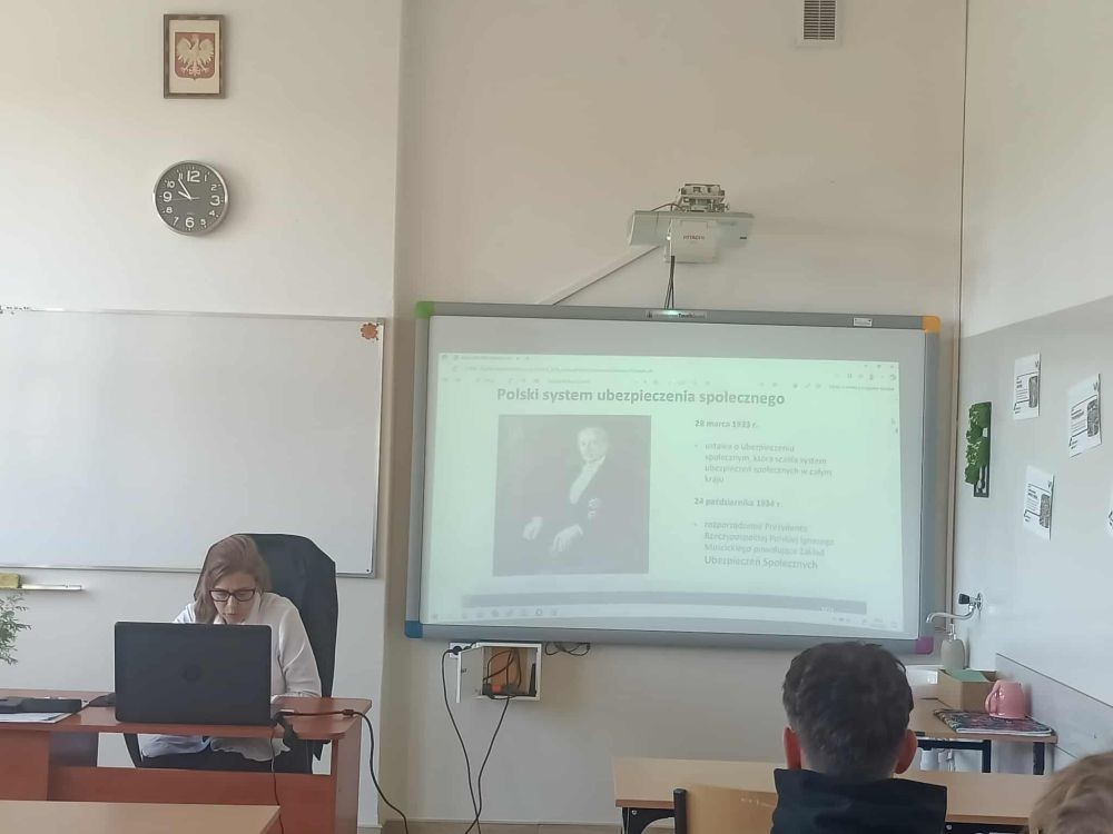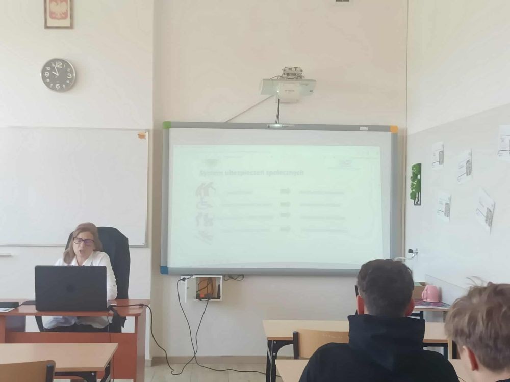 Uczniowie pozyskali wiedzę z zakresu historii ubezpieczeń, ubezpieczeń społecznych, ubezpieczenia zdrowotnego osób zatrudnionych na podstawie umów o pracę, umów cywilnych oraz w zakresie samozatrudnienia. Podejmowana tematyka dotyczyła również zagadnień związanych z eZUS i PUE- ZUS. Zajęcia wzbogacono ciekawymi filmami i prezentacją multimedialną. Spotkanie ugruntowało i wzbogaciło wiedzę uczniów oraz stanowiło interesujące doświadczenie edukacyjne.