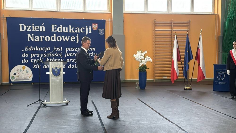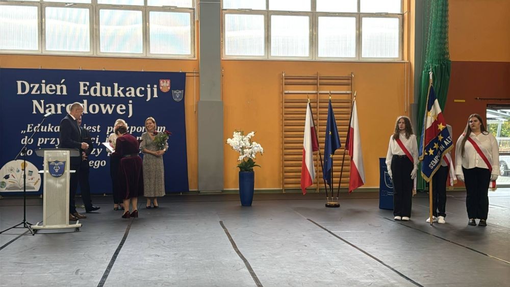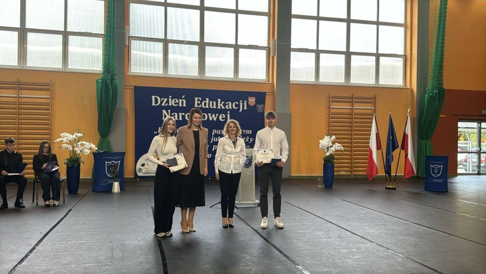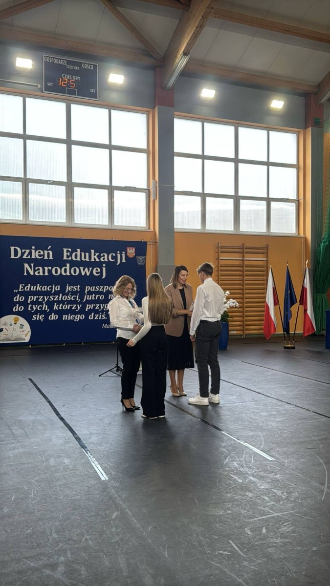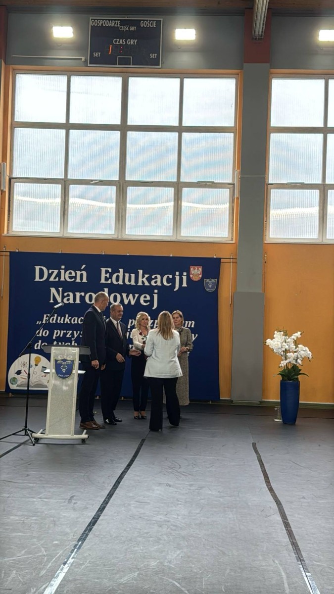 15 października Zespół Szkół Ekonomiczno-Administracyjnych im. St. i Wł. Grabskich był organizatorem powiatowych obchodów Dnia Edukacji Narodowej. W wyjątkowy nastrój tej uroczystości wprowadzili Nas Karolina, Milena, Ola oraz Wiktor, prezentując przepiękny układ taneczny. Prowadzący, Kira Kavaliunaitse oraz Jakub Niszczak, powitali wszystkich obecnych. Wprowadzony został sztandar szkoły i odśpiewano hymn. Następnie Pan Dyrektor Mieczysław Drożdżewski przywitał przybyłych na uroczystość gości i poprosił o zabranie głosu Starostę Kolskiego Pana Roberta Kropidłowskiego. W jego imieniu życzenia z okazji Dnia Edukacji Narodowej złożył Wicestarosta Lech Brzeziński. Po jego wystąpieniu Starosta, wspólnie z Przewodniczącym Rady Powiatu Kolskiego Panem Ryszardem Kasiorkiem, Naczelnikiem Wydziału Oświaty, Kultury i Promocji Panią Dorotą Szkudlarek oraz Zastępcą Naczelnika Panią Alicją Łączkowską, wręczyli nagrody dyrektorom oraz nauczycielom ze szkół ponadpodstawowych powiatu kolskiego, doceniając ich szczególne osiągnięcia. Głos zabrała również przedstawicielka Związku Nauczycielstwa Polskiego Pani Joanna Adamczyk. Muzycznie uświetniła ten moment Antonina Jabłońska przy akompaniamencie Klaudii Gajdy oraz Oliwii Biernat, wykonując utwór autorstwa Henryka Perzyńskiego pod tytułem „Czyjeś serce”. Następnie nauczyciele kolskiego „Ekonomika” zostali uhonorowani nagrodami Dyrektora ZSEA. Prowadzący uroczystość złożyli wszystkim życzenia, a przedstawicielki Samorządu Uczniowskiego wręczyły upominki z okazji Dnia Edukacji Narodowej. W tle mogliśmy wysłuchać pięknej recytacji „Lekcji” w wykonaniu Marceliny Kosteckiej oraz niezapomnianej interpretacji piosenki „Riptide” w wykonaniu Marii Kacperskiej. Podczas uroczystego apelu nagrody w postaci dyplomu oraz bonu na wspólne wyjście otrzymały klasy, które osiągnęły najwyższą średnią oraz zapracowały na najlepszą frekwencję w ubiegłym roku szkolnym. Zwycięzcami w przypadku osiąganych wyników są uczniowie obecnej klasy 4 TEA, natomiast klasa 3 TR wiedzie prym w regularnym uczęszczaniu na zajęcia. Artystycznie moment ten wzbogaciły występy Wiktora Bucikiewicza, wykonującego solowy układ choreograficzny oraz Leny Niszczak, śpiewającej utwór Oskara Cymsa „Nie musisz się bać”. Zwieńczeniem występów muzycznych było wspólne wykonanie utworu „Sobie i Wam” z repertuaru Męskie Granie Orkiestra. Przy mikrofonie stanęły Antosia Jabłońska, Oliwia Biernat, Julia Podolska, Marcelina Kostecka, Nikola Łagosz, Julia Królikowska, Julia Krawczyk, Magdalena Pankowska, Weronika Jakubowska oraz Pani Anna Malicka.