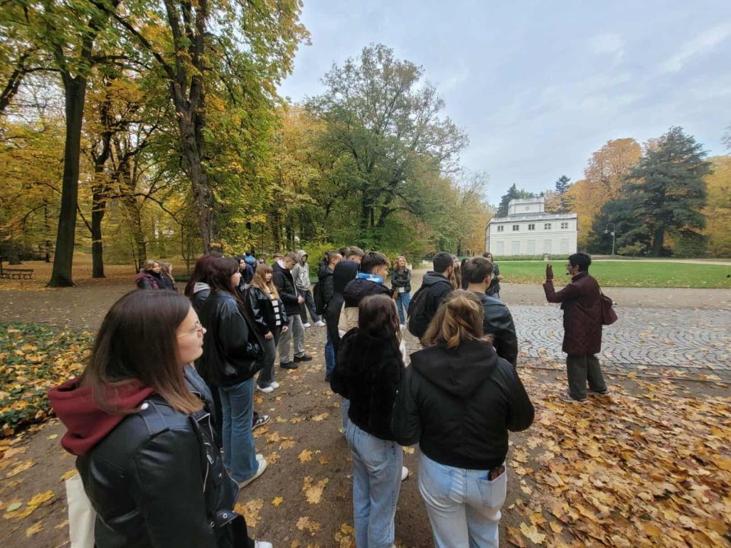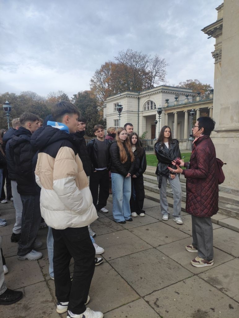 W dniu 23 października 2025 r. grupa uczniów z Zespołu Szkół Ekonomicznych w Kole miała okazję spędzić inspirujący dzień w stolicy. Podczas wycieczki młodzi ludzie poznali wiele zabytków Warszawy, między innymi zwiedzali Łazienki Królewskie z przewodnikiem, który przybliżył im historię tego wyjątkowego miejsca.