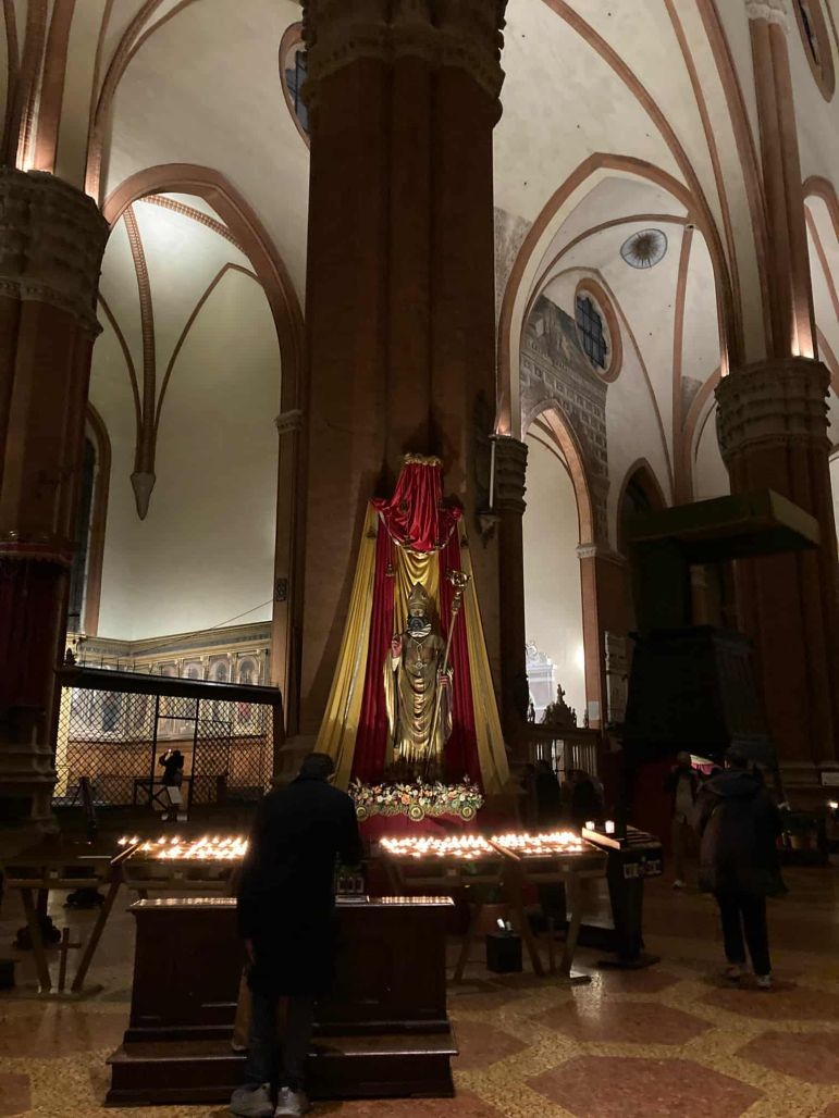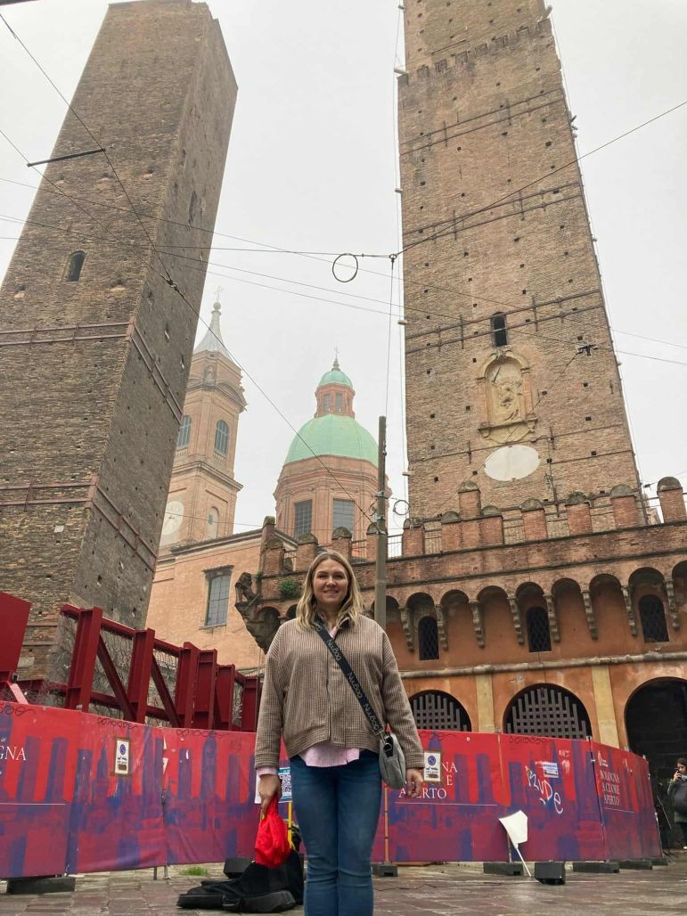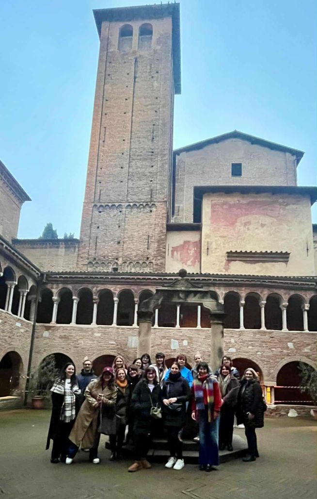Następnie wraz z przewodnikiem udaliśmy się na wspólny lunch, podczas którego zasmakowaliśmy tradycyjnych włoskich potraw. Miła atmosfera sprzyjała integracji oraz swobodnym rozmowom. Kolejnym etapem dnia była piesza wędrówka po centrum miasta. Przewodnik pokazał nam najpiękniejsze miejsca Bolonii, m.in. Le due Torri – dwie słynne wieże (jedna z nich ma aż 97 metrów wysokości), bazylikę Santo Stefano, Piazza Maggiore – główny plac miasta, a także bazylikę św. Petroniusza.