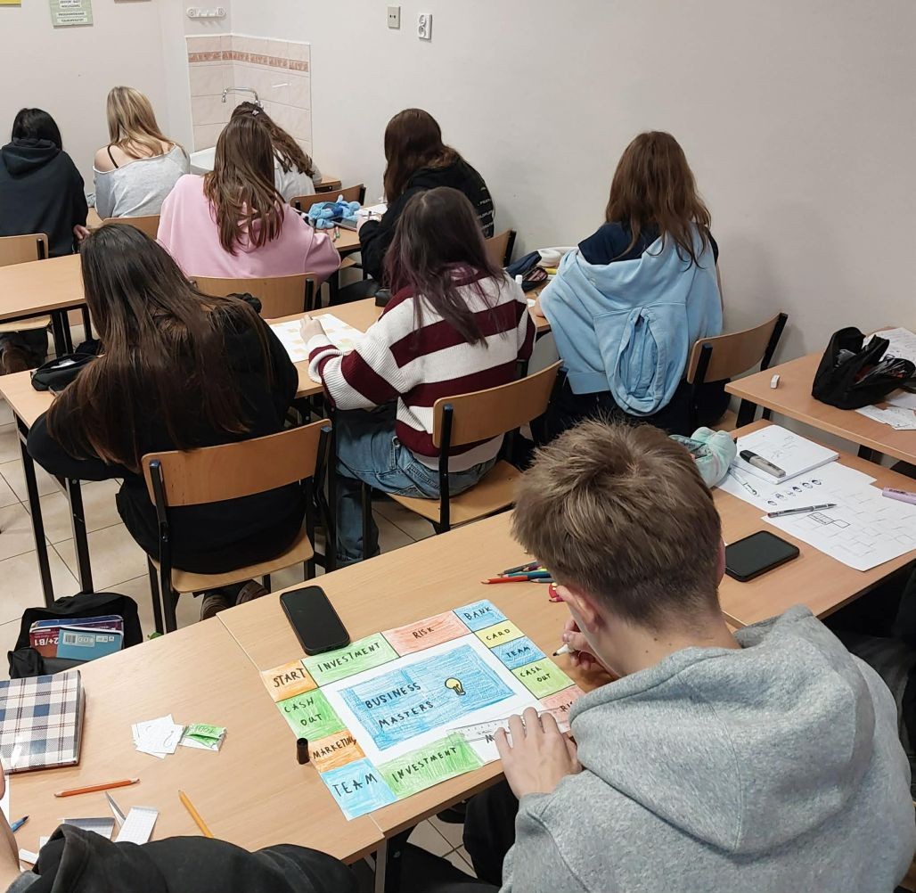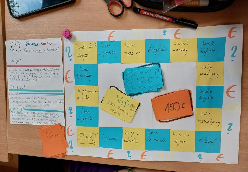 10 grudnia 2025 uczniowie klasy 1 TOT uczestniczyli w niezwykle dynamicznych i ciekawych zajęciach Biznes i Zarządzanie. Zadaniem uczniów było wykreowanie gier planszowych nawiązujących do tematyki przedmiotu. Przy wsparciu nauczyciela -przewodnika uczniowie doskonale poradzili sobie z tym wyzwaniem, tworząc koncepcję, mechanikę i zasady gry, projektując oprawę graficzną, testując prototyp gry planszowej z nauczycielem i w oparciu o informację zwrotną – modyfikując swój produkt.
