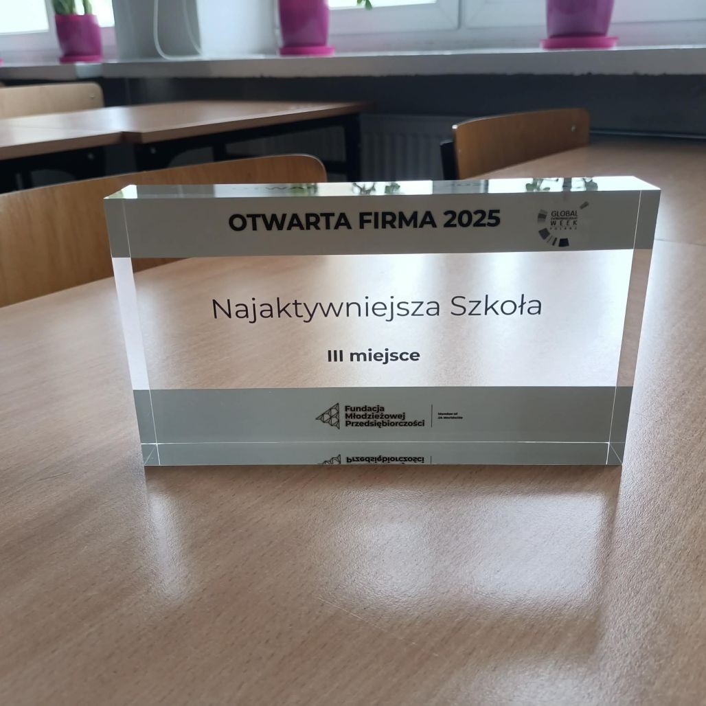 Zespół Szkół Ekonomiczno-Administracyjnych w Kole otrzymał tytuł „Najaktywniejszej Szkoły” w konkursie towarzyszącym programowi „Otwarta firma 2025”, zajmując III miejsce. To duży sukces uczniów i nauczycieli, możliwy do osiągnięcia dzięki zaangażowaniu lokalnych przedsiębiorców, którzy zechcieli poświęcić swój cenny czas na spotkania z młodzieżą.