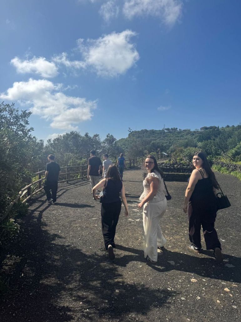 Pierwszym punktem programu była- Caldera de Bandama – imponujący krater wulkaniczny, który zachwycił uczestników widokami rozciągającymi się na okolicę. Uczniowie mieli okazję dowiedzieć się więcej o wulkanicznym pochodzeniu wyspy. 🌋