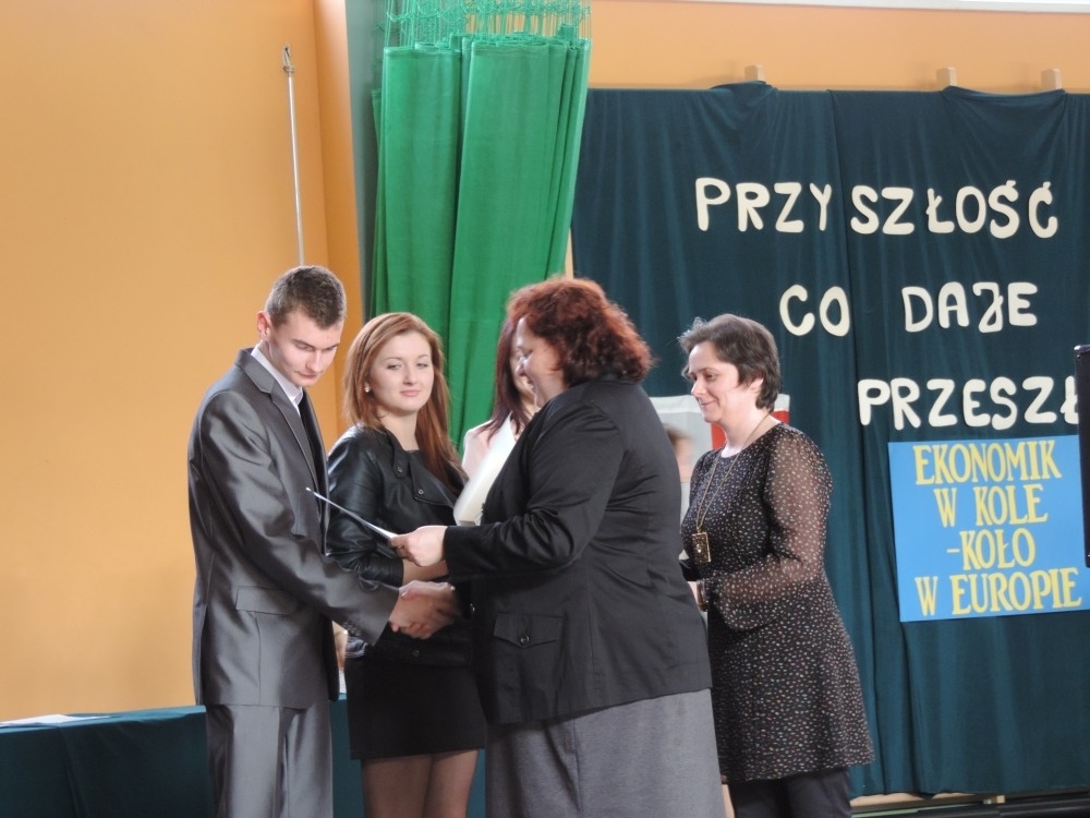 W dalszej części spotkania najzdolniejszym uczniom wręczono świadectwa z wyróżnieniem, dyplomy i upominki. Dodatkowe nagrody otrzymały 2 uczennice z najwyższą średnią w ZSEA w Kole, były to: Jassica Majdecka z kl. 3LO śr. ocen 5,19 i Beata Trzcińska z kl. 4 TA śr. ocen 5,13.