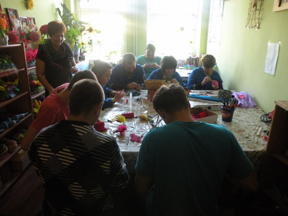 Uczniowie w pracowniach WTZ wspólnie z uczestnikami warsztatów uczyli się: haftowania, szycia, robienia bransoletek z koralików, robienia kwiatów z bibuły, malowania specjalnymi farbami, wykonywali również kartki świąteczne. W pracowni rehabilitacyjnej uczniowie ZSEA pod nadzorem rehabilitanta sprawdzali swoją sprawność manualną.