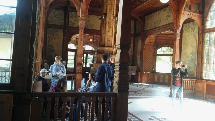 Dzień 3: Karpacz. Kościół Wang, przeniesiony z Norwegii, zbudowany jest z drewna sosnowego i - może się to wydawać nierealne - do jego budowy nie użyto ani jednego gwoździa! Na przykościelnym cmentarzu odnaleźliśmy grób Tadeusza Różewicza, na którym zapaliliśmy znicz. Następnie w planach był Hotel Gołębiewski, który jest jednym z największych hoteli w Polsce i posiada niemal wszystko. Później zjechaliśmy 6-osobowym wyciągiem krzesełkowymi i udaliśmy się na kolejkę grawitacyjną.