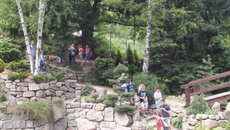 Dzień 4: Czas powrotu. Po śniadaniu ruszyliśmy w drogę. Jednak nie prosto do domu. Najpierw zahaczyliśmy o Karkonoski Park Narodowy, a w nim Wodospad Szklarki. Następnie wąską drogą dotarliśmy do Ogrodu Japońskiego "SIRUWIA" ("Sylwia"), gdzie podziwialiśmy piękną roślinność mająca dopiero zaledwie 15 lat. Na razie może się wydawać, że na terenie ogrodu jest dużo kamieni, lecz za kilka lat rośliny podrosną, a kamienie będą jedynie dodatkiem. Przechadzając się po ogrodzie krętymi ścieżkami możemy zachwycać się widokiem zasadzonych rododendronów i azali. Jednak najbardziej rzuca się w oczy gunera olbrzymia, której liście w ciągu jednego sezonu dochodzą nawet do 2m średnicy! Dziennie wypija ona ponad 200 litrów wody, a wbrew pozorom, nie rośnie w wodzie.