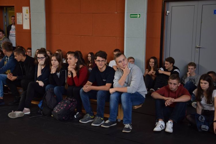 Prowadzeniem uroczystości zajęli się Wiktoria Filipiak oraz Bartek Pałczyński. W wyjątkową atmosferę tego święta wprowadził uczestników występ Leny Kowalskiej przy akompaniamencie Eryka Kozajdy. Następnie Sylwia Okupska wyrecytowała dla zgromadzonych wiersz Konstantego Ildefonsa Gałczyńskiego. Nasza młodzież zadbała również o to, by wszystkim dopisywał dobry humor, a to za sprawą skeczu „Pierwsza randka”, w którym podziwialiśmy kunszt aktorski Filipa Remisza oraz Janka Łaszkiewicza. Jeszcze więcej uśmiechu na twarzy publiczności pojawiło się za sprawą filmiku o niepozornym tytule „Co mówią nauczyciele Ekonoma?”, który stworzyła Adrianna Zapała przy współpracy z Jędrzejem Śmietańskim oraz Damianem Woszczyńskim. Usłyszeliśmy również utwory muzyczne „Side to Side” oraz „One Last Time” w wykonaniu wcześniej już wspomnianej Leny Kowalskiej. Uczniowie złożyli nauczycielom życzenia z okazji Dnia Edukacji Narodowej oraz wręczyli drobne upominki ufundowane przez Samorząd Uczniowski.