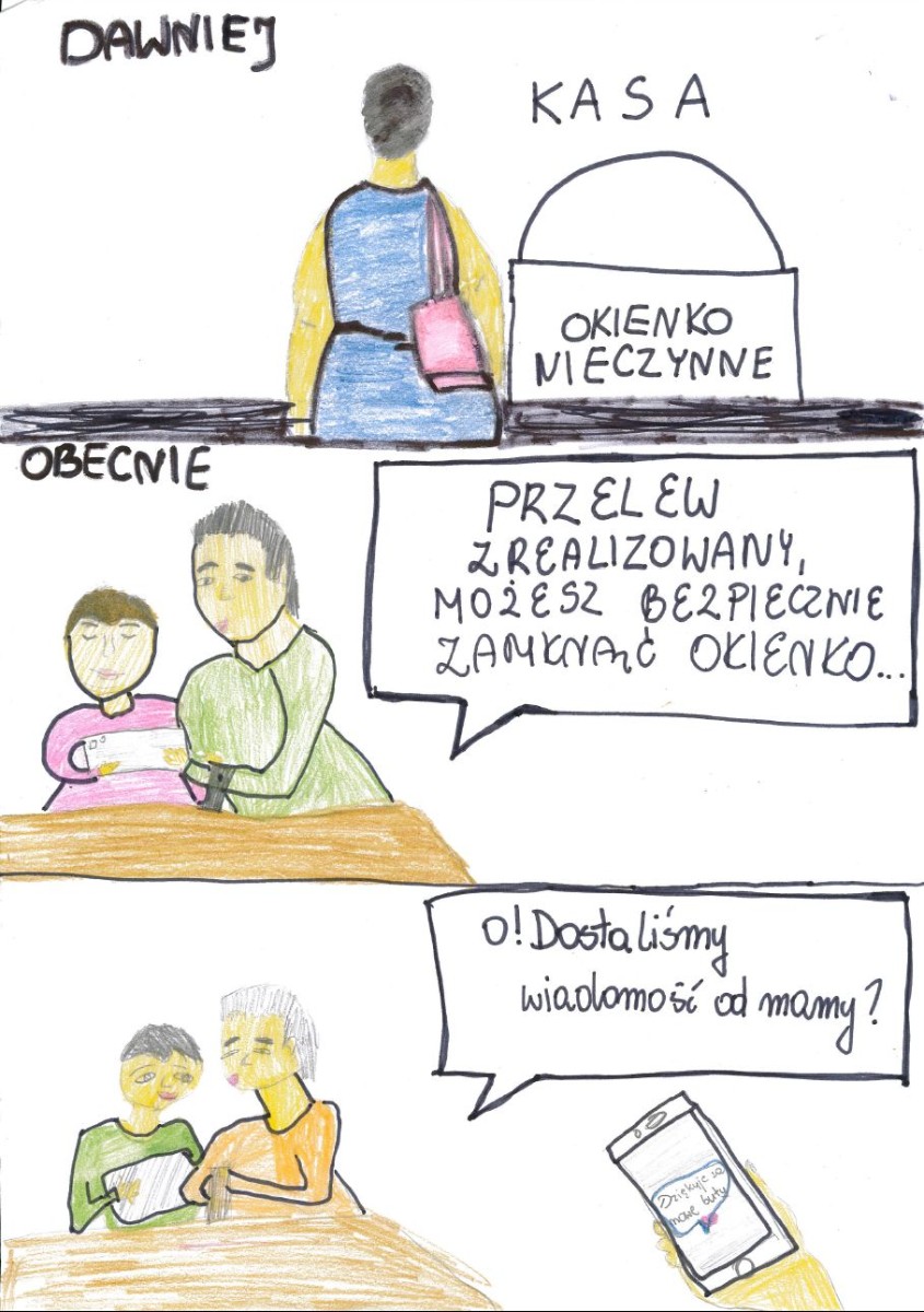 Wyposażeni w wiedzę o podatkach i ubezpieczeniach otrzymali zadanie przedstawienia zagadnienia w postaci komiksu. Efekty ich pracy możemy ocenić pod adresem https://www.interankiety.pl/i/4LQR59gz Poniżej prace uczniów klas pierwszych.