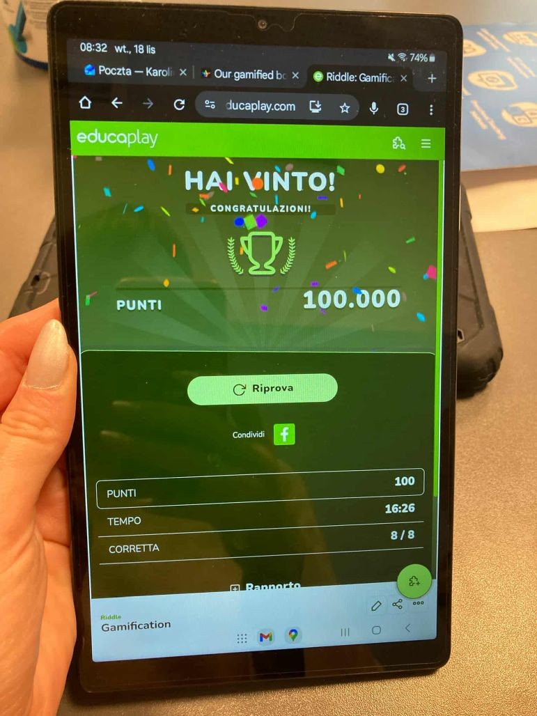 Szkolenie uświadomiło nam, jak wiele ciekawych i angażujących metod nauczania można wykorzystać w pracy z uczniami. Takie gry nie tylko sprawdzają wiedzę, ale przede wszystkim pomagają ją utrwalić i pozytywnie wpływają na integrację całej grupy.